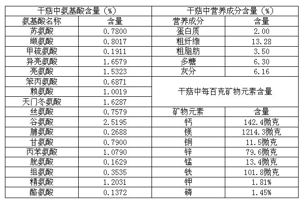 每100克可食部分含水量92.5克,蛋白質2.1克,脂質0.3克,碳水化合物(糖質3.7克,纖維0.7克),灰分0.7克(其中鈣2毫克,磷75毫克,鐵1.1毫克),維生素A 1U,維生素B1 0.08毫克,維生素B2 0.5毫克(可以加速體內脂肪的代謝,有美容的效果)。斑玉蕈的蛋白質中氨基酸種類齊全,包括8種人體必需氨基酸,其中賴氨酸、精氨酸含量高于一般菇類,對青少年智、增高起著重要作用。斑玉蕈子實體中提取的β-1,3-D葡聚糖具有很高的抗腫瘤活性,而且從斑玉蕈中分離得到的聚合糖酶的活性也比其它菇類要高許多,其子實體熱水提取物和有機溶劑提取物有清除體內自由基作用,因此,有防止便秘、抗癌、防癌、提高免疫力、預防衰老、延長壽命的獨特功效。作為大眾消費的食品其貨架期長,是一種低熱量、低脂肪的保健食品。